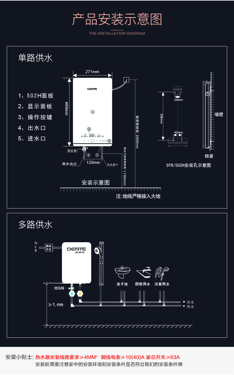 產品中心 > 即熱電熱水器系列> 德恩特DTR-V7H85恒溫經典 大屏顯示 四季淋浴快速洗澡